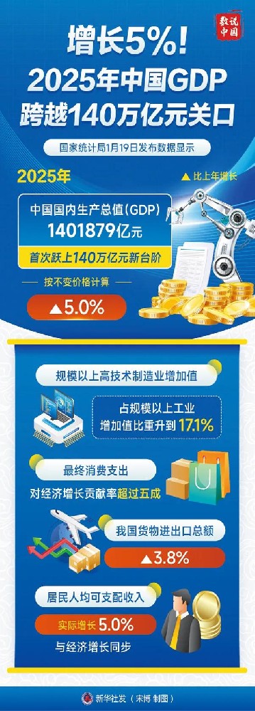 怎么看我国经济顶压前行、向新向优——访国家统计局新闻发言人《求是》杂志记者 陈有勇编者按:近期,2025年中国经济年报出炉,经济总量突破140万亿元大关,比上年增长5%,国民经济顶住多重压力挑战,圆满完成主要预期目标,发展向新向优。对此,本刊记者对国家统计局新闻发言人进行了专访,分析2025年经济运...